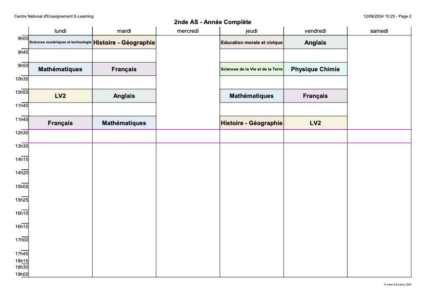 Respect du calendrier des devoirs du CNED
